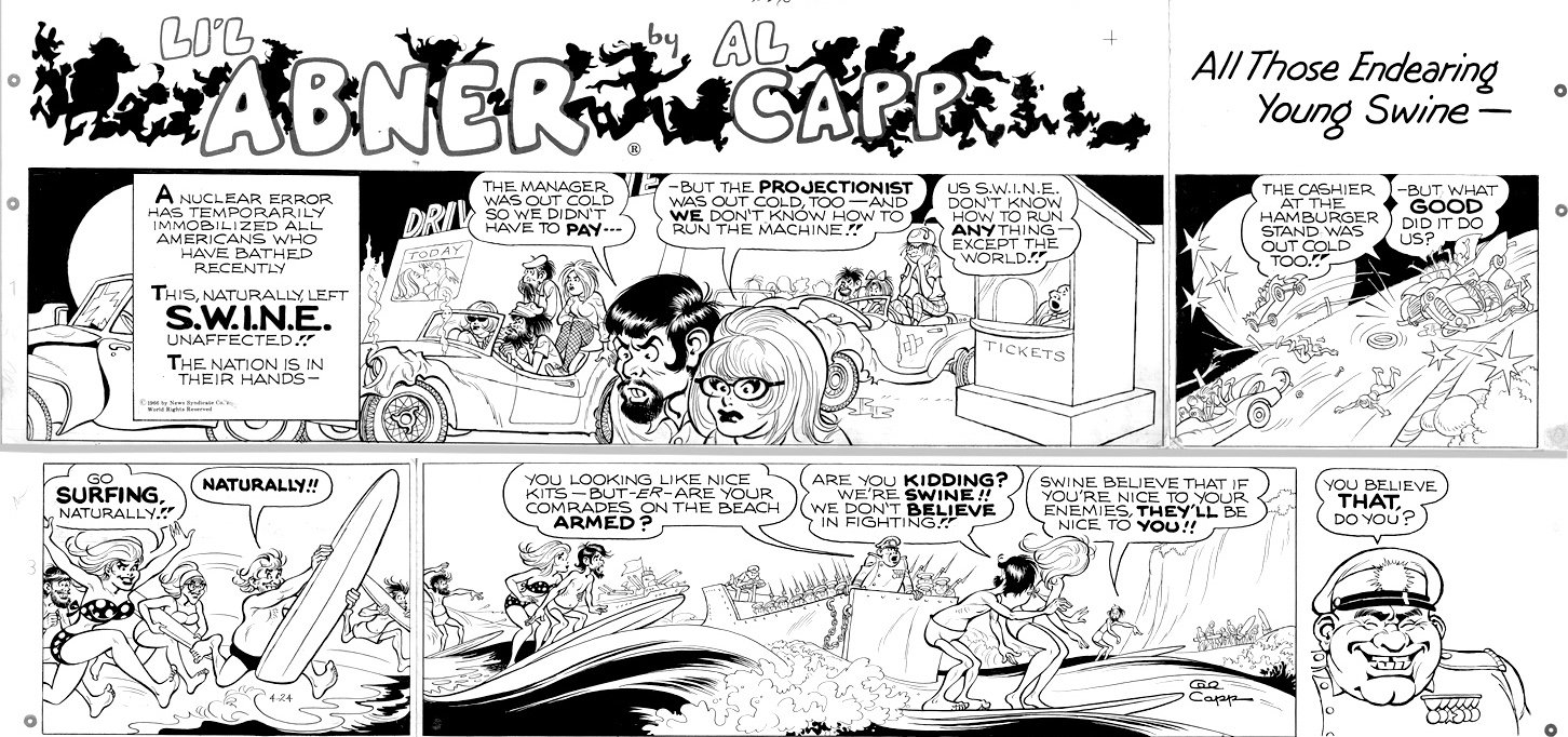 Once upon a time, the funnies or the comics pages dominated newspapers – back when newspapers were the main source of information for most Americans. In those days, Walt Kelly and Al Capp were titans of the funnies. Their strips Pogo and Li’l Abner were cultural sensations. Both artists were groundbreaking in the way they incorporated satire into their fantastical worlds, back when the comics page was supposed to be an apolitical neutral zone. Even though their strips are not front and center in pop culture today, we are still feeling the ripple effects of what they accomplished. In part two, I talk with BYU professor Kerry Soper and comic book publisher and author Denis Kitchen about how Al Capp became a hero to the left and the right, while questioning who should be the subject of satire.